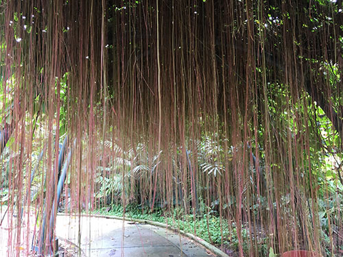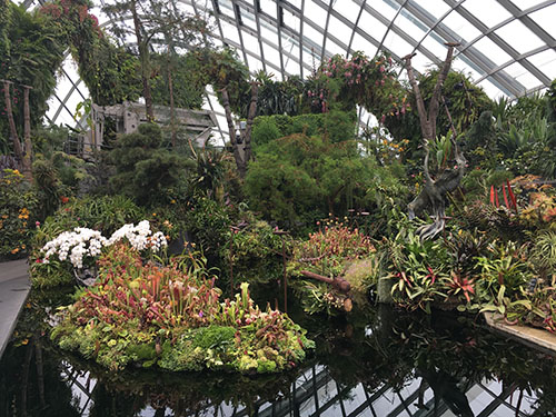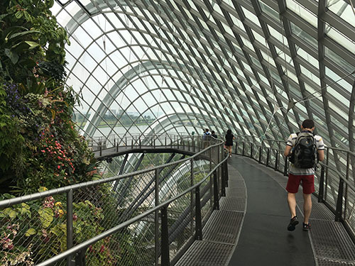 Prvý skleník sa volal “Flower Dome”. Mal rozlohu 1,2 hektáru, výšku 38 metrov a bol to naozaj raj kvetín, rôznych tvarov, farieb a vôní. Dozvedela som sa, že muškát je z Afriky a rastie tam voľne. Vlastne všetky črepníkové rastliny rastú voľne v teplých oblastiach. V Austrálií má snáď každá tretia predzáhradka zasadený muškát v zemi. Pripadalo mi to úsmevné. Potosovec zlatý (Epipremnum pinnatum) v angličtine “Devil’s ivy” sa v Singapure voľne popínal v lese po stromoch, takže pojem izbové kvetiny je použiteľný len v miernych klimatických podmienkach ako u nás v Európe. Inak to všetko rastie niekde voľne. Ani to nemusí byť nič extra. Potosovec rástol v Singapure ako burina.
