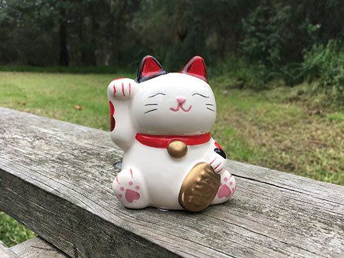 Maneki-neko je tradičná japonská soška mačky, ktorá má jej majiteľovi prinášať šťastie.