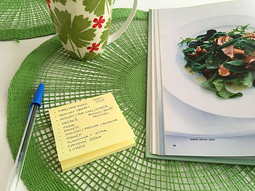 Spísala som zoznam čo nakúpiť a zistila, že píšem v troch jazykoch, čo sa mi zrovna hodilo… to bude ešte sranda. Budeme trilinguálni.