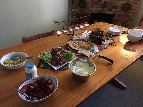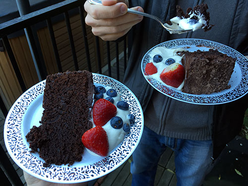Jídla tam byly kvanta. Všichni jsme si pochutnali. Amanda grilovala (dcera Mary a Franka, příští týden odlétá zpět do Jižní Afriky, kde žije). Takže party byla částečně oslava Frankových narozenin a částečně rozlučka s Amandou.