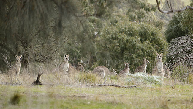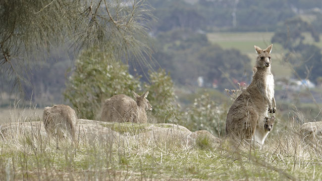 Nie jeden, ani dva, rovno celé stádo! Kŕdeľ divých klokanov.