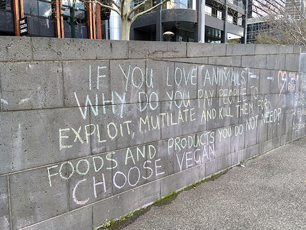 Propagácia veganstva. Neviem, či je pre ľudí dobré úplne obmedziť mäso, ale nemyslím si, že by ho mali toľko jesť. Hlavne tie podmienky v akých dnešné zvieratá žijú (umelé svetlo, haly, strava v prášku a umelé vitamíny…) nie sú podľa mňa úplne v poriadku. Tým pádom asi nie každé mäso bude dobrej kvality, keď všetko musí vyrásť rýchlo a musí byť toho veľa keď sme takí veľkí jedáci.