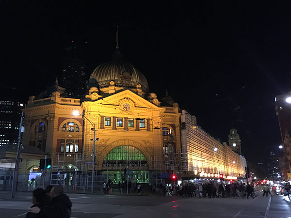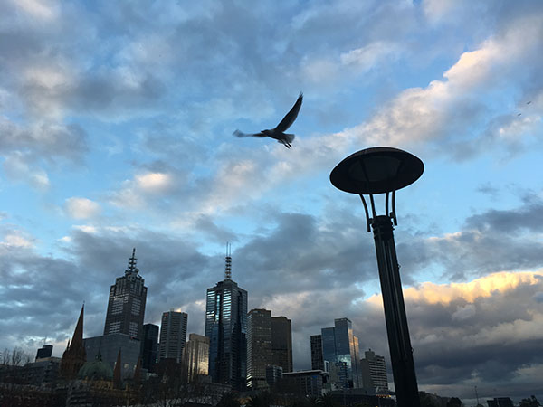 Austrálsky landscapingAkýsi umelecký oblúk nad cestou…Čajka pri západe Slnka na River side. Ak vám spadne kúsok jedla na zem, už sa čajok nezbavíte.Najznámejšia stanica v Melbourne, Flinders Street.Slávnosti Budhy na Federation SquareAkási budova na stranici metra v centreRozdiel medzi pražským metrom a stanicami v Melbourne? Žiadne reklamy!