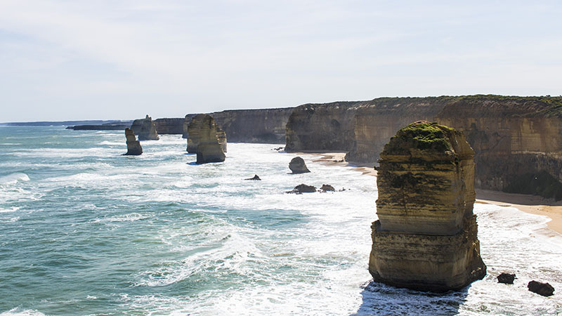 Väčšinu miest, ktoré sme na Great Ocean Road navštívili, bola bez ľudí (stretli sme ich fakt len zopár), ale keď sme dorazili do nášho cieľa ku 12 Aspostles, mysleli sme si, že sa nám to sníva. Miesto bolo preplnené ázijskymi návštevníkmi. Chvíľu sme sa cítili ako v Číne. Všade po sebe pokrikovali, robili si “selfíčka”, máchali so selfie-tyčkami a fotili sa pri každej ceduli s nápisom “Welcome to Twelve Aspostles”. Ťažko sme si povzdychli a vydali sa za atrakciou. Z 12 apoštolov je momentálne už len 8 lebo erodovali, voda si ich vzala. Tak to proste v prírode chodí…