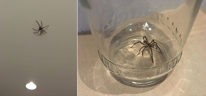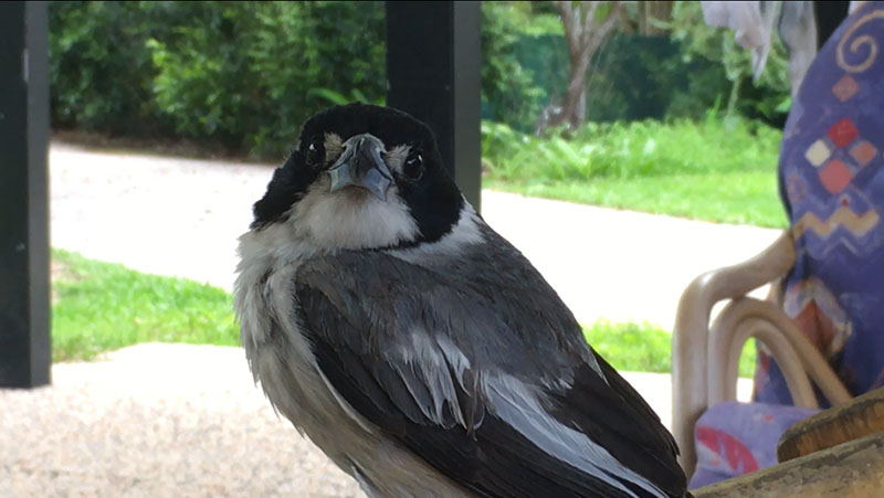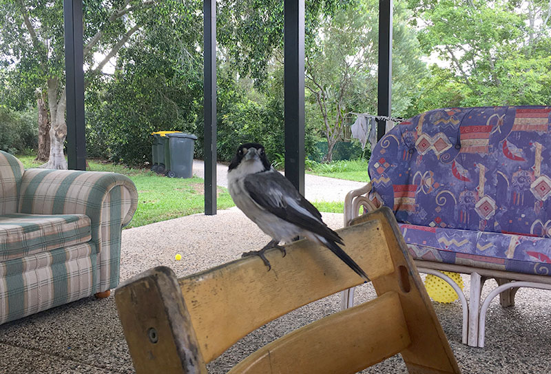 Toto je Pepík. Vták, čo má rád spoločnosť. Často nás chodí navštevovať, keď vonku obedujeme, a spieva na židli.A toto je baby Huntsman. Konečne sme v Austrálií videli pavúka. Tento dokáže dorásť do veľkosti mužskej dlane.