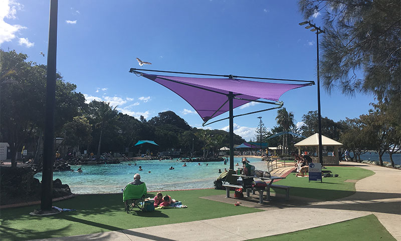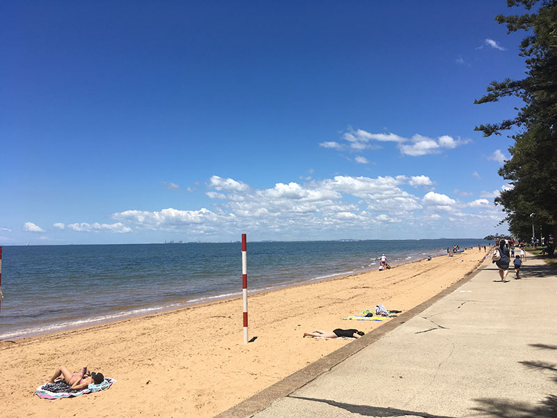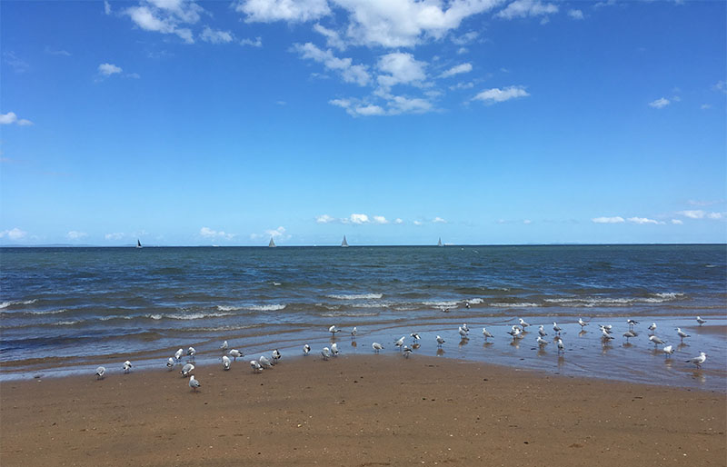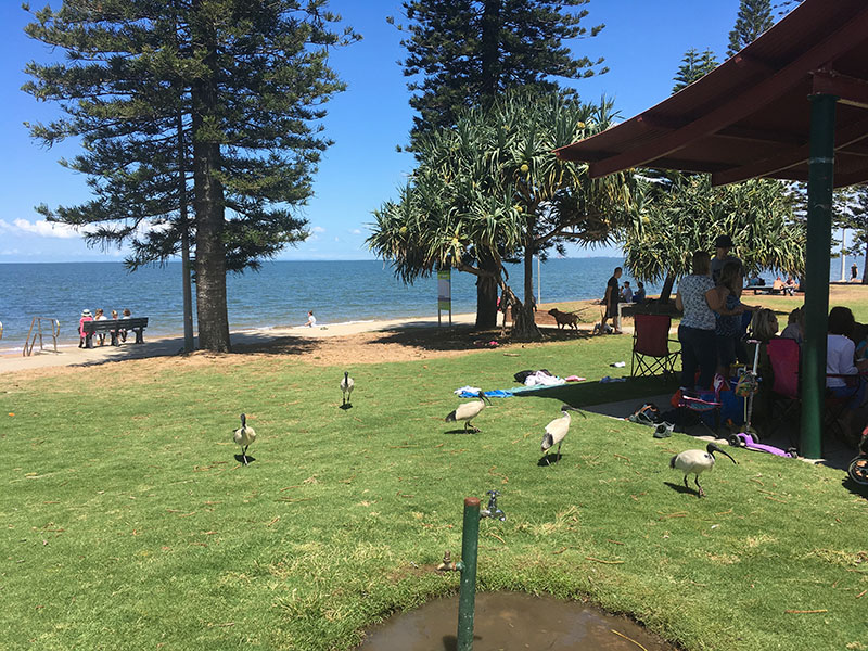 Sú tu aj “litter bins” alebo “bin chicken” smetiakové Ibisy, ktoré boli aj v Sydney.Taká normálna nedeľa… pláž v Redcliffe.Pre tých, čo sa boja do oceánu je voľne prístupné kúpalisko pár metrov od pláže.Spolok čajok