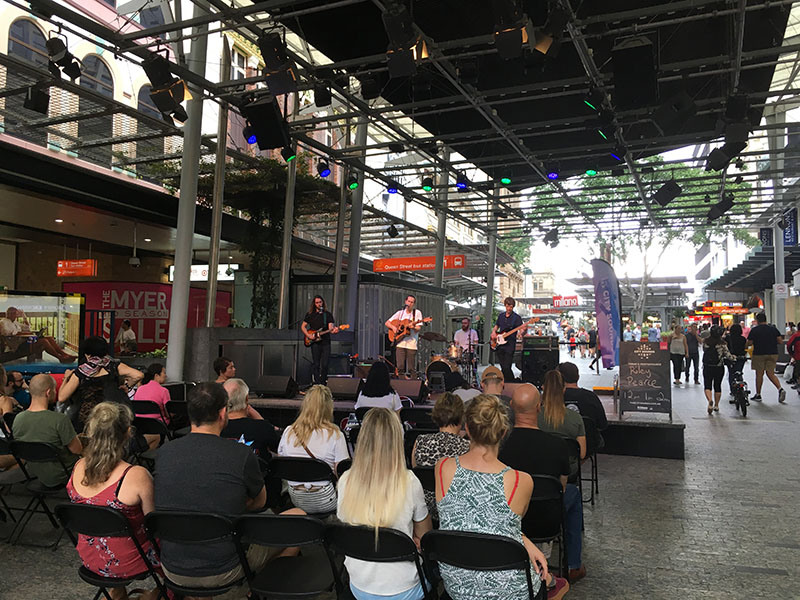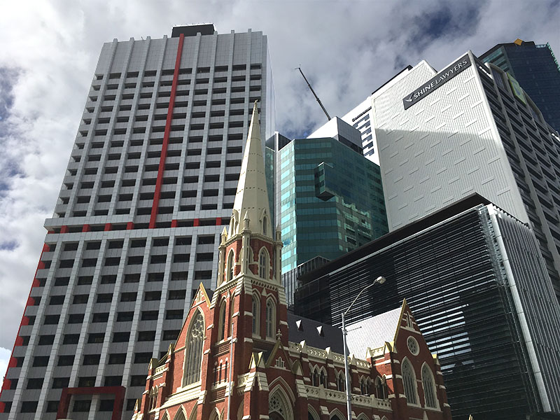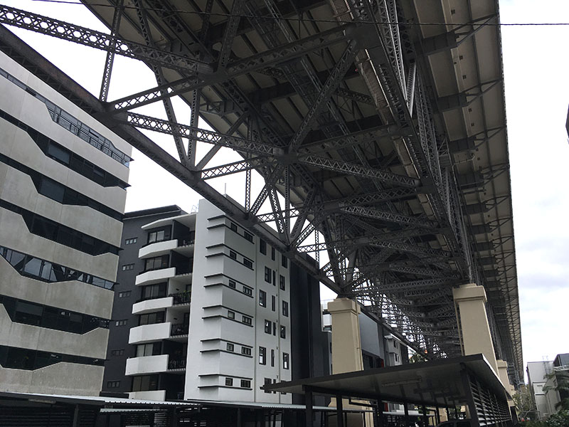 Brisbane je známe týmito fialovo-kvitnúcimi stromami – Jacaranda, ktorými je práve teraz zaplavené. Najprv sú plné fialových kvetov a po pár týždňoch začnú mať aj listy.Starý mlyn neďaleko centra BrisbaneBrisbane CBD, pešia zóna na Queen Street, ktorá je plná pekných obchodov. V porovnaní s Melbourne, kde celým centrom jazdia tramvaje, je to kľudnejšie.Každý víkend je na Queen Street nejaký koncert začínajúcich kapiel, aby sa mohli pred publikom zviditeľniť.Motýlia fasádaKontrastná architekturaPokračujeme v kontrastnej architektúre: novostavba pri/pod mostom. To je “luxus”. Keď sa ich niekto spýta, kde bývajú, asi povedia, že pod mostom.CityCat, lodička, ktorá prepravuje ľudí z jedného brehu na druhý po rieke cez mesto. Brisbane je totiž predelené meandrami rieky na polovicu. Na niektorých častiach je pár mostov ktorými sa dostanete na druhú stranu, inde je prívoz, ale pre peších sú asi najideálnejšie lodičky.Thorton Street ferry terminal.Pršalo, tak bolo z rieky kakavko. Časom dodáme slnečnejšie fotky.