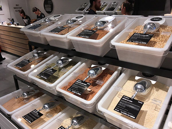 Výhodou tohto obchodu je, že sa neprodukuje plastový odpad a kúpite tam konečne aj iné druhy múky než len plain flour a self-rising flour, ako napr. pohánkovú, quinoovú, kukuričnú, ryžovú atď.