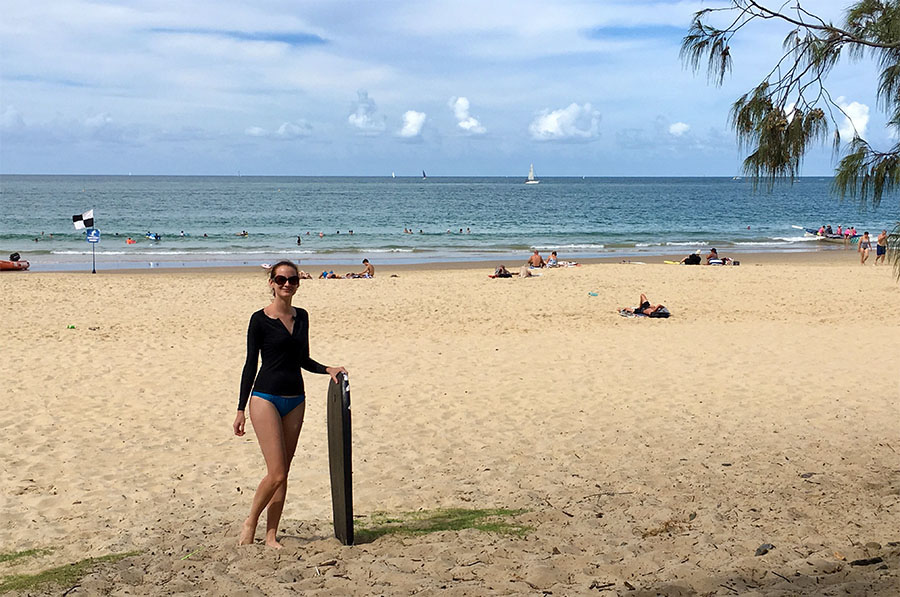 Ako inak tráviť leto než vo vode? Bol ďalší 30-stupňový deň, tak sme sa vybrali na výlet k vodopádu do dažďového pralesa a k oceánu, na pláž Mooloolaba v Sunshine Coast.