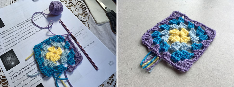 Nápad prišiel, keď sa mi zrovna stala jedna nemilá vec – stratili sme nášho anjelika, ktorého sme mali zaveseného v aute. Musel niekde vypadnúť. “Čo už”, povedali sme si, “Asi mal ísť robiť radosť niekomu inému…” Skúsim si teda nejakého nového vyrobiť. Premýšľala som ako by vypadal, aby bol presne podľa mojich predstáv a v tom som narazila na háčkovanie. Viem šiť, štrikovať… ale háčkovať vôbec. Našla som pár návodov, vypadalo to krásne, ale komplikovane. Podľa videí by som to asi nezvládla. Určite budem potrebovať poradiť. Začala som pátrať na internete po rôznych kurzoch v Brisbane, až som našla jeden najzaujímavejší – Granny squares crochet. Manžel povedal, že ma tam pustí, tak som si ho kúpila. Stihla som to. Miest bolo len 8, a tri dni po zakúpení už boli všetky vypredané.