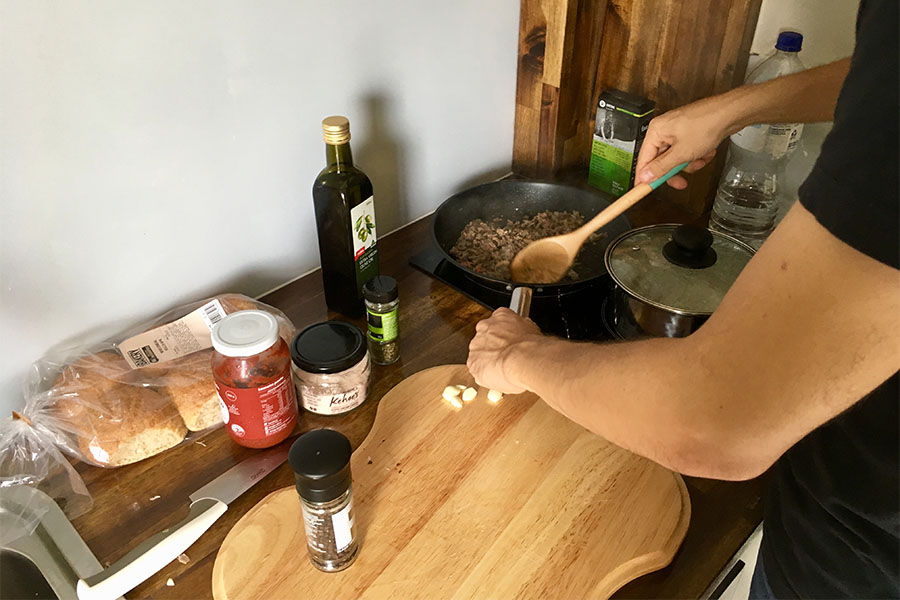 Snažíme sa žiť tak, aby sme sa tu cítili dobre. Náš bežný deň začína tým, že sa zobudíme tak ako to vydá – bez budíku. Pravidelne je to okolo 8-mej hodiny (všetko tu začína žiť až po 9h, ale potraviny sa tu otvárajú našťastie už o 7-mej). Keď sa nám zrovna chce, zacvičíme si jógu. Najradšej mám naše spoločné snídaně – to sme si v ČR mohli dovoliť jedine cez víkend. V pracovných dňoch sme mali často naponáhlo a stíhali sme si pripraviť len niečo na cestu. Už sme si založili aj bylinkovú záhradku kde máme meduňku, lemongrass, mátu, petržel, koriander, pažitku, aloe a bazalku. Uvidíme, čo z toho prežije. Do fliaš si zhromažďujem dažďovú vodu, aby som ich neskôr mohla zalievať.