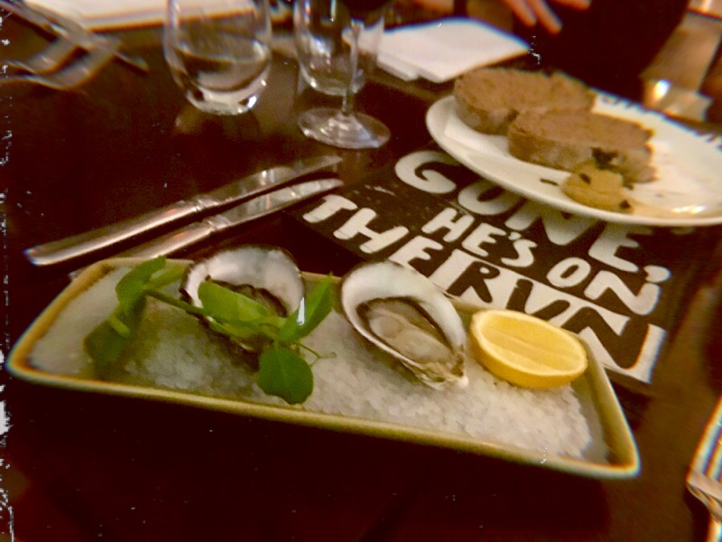 Potom dobehol jeden mladý čašník s opečovanými vousami (mal ich brutálne vytvarované, na koncoch kudrlinky), a pýtal sa na predkrm. Všetci boli z tých jeho fúzov unesení a vkuse vraveli, aby ich obsluhoval “the one with curly moustache”. Na predkrm sme si vybrali ústrice. Doniesli nám ich spolu s miskou olív a žitným chlebom s pomazánkou. Všetko to bolo výborné. V pomazánke som cítila nejakú známu chuť, ale vôbec som nevedela identifikovať, z čoho mohla byť. Doma sme zistili, že je to chuť melasy – bolo to melasové maslo.