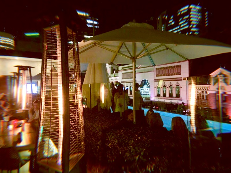 Bar s bazénom sa nachádzal v 4. patre na terase, s výhľadom na nočnú oblohu a Queen Street. V bazéne sa nikto nekúpal. Asi mali ľudia ešte málo promilé v krvi. Keď sme dorazili, bolo tam už asi desať ľudí z firmy. Pozoznamovali nás, a Jirko spoznal aj ďalšie nové tváre. Cayley, baba z payrollu (čo posiela Jirkovi výplatu), nás vzala rovno k baru. Do ruky nám strčili nápojový lístok plný koktejlov. Vôbec sme nevedeli, čo si máme vybrať. Všetky drinky vyzerali strašne “fancy” a hrali rôznymi farbami (normálne bola cena $18-25 za drink, čo mi pripadalo celkom dosť, ale firme to zjavne nevadilo).