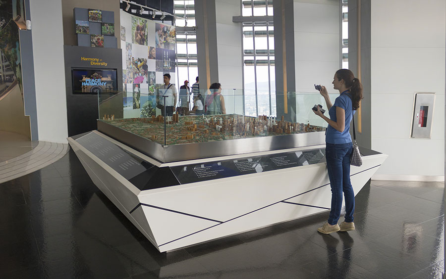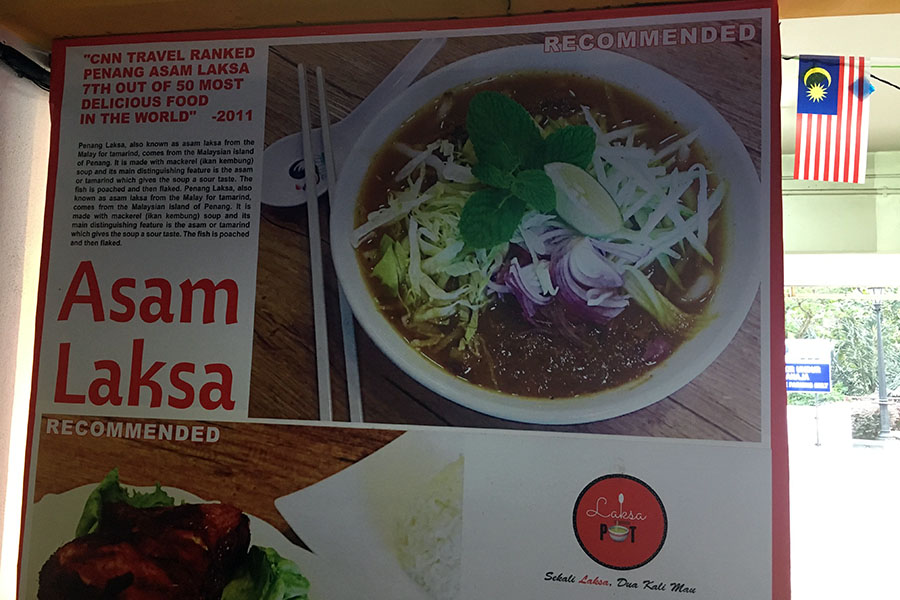 Ešte sme sa boli popozerať v ďalšom parku, pobehali sme centrum a vyšli k ďalšej vežovej vyhliadke, kde sme si dali miestnu laksu, aby sme ju mohli porovnať so singapúrskou (bola úplne iná). Pýtali sa nás, akú pikantnú si ju prosíme, tak sme zvolili tú najmenej pikantnú, tzv. “mild”. Jirko si objednal nejaké miestne jedlo s ryžou. Keď som laksu ochutnala, myslela som si, že budem z úst chrliť oheň. Jirkove jedlo bola ryža s mäsom v chutnej paradajkovej omáčke a drobné sušené rybičky s očičkami. Keď sme si odmysleli tie očičká, chutilo to výborne. Obe jedlá sme nakoniec zjedli celé, ale laksa bola naozaj výzva.