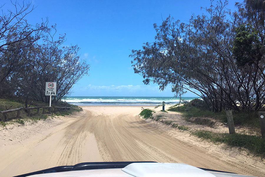 Cesta na ostrov trvala 45 minút. Podobne ako na Green Island, na ktorom sme boli keď sme navštívili Cairns. Na ostrove sme si potom vyzdvihli auto a hurá na austrálske safari. Ale nebolo to až tak jednoduché. Museli sme pred jazdou absolvovať školenie na 4×4 po piesočnatom ostrove, pretože tam platili špecifické miestne predpisy. Michal spočítal, že to bolo 50 minút utrpenia. Po ňom bola zaslúžená odmena – dostali sme kľúče od auta a mohli sa vydať na cesty. Najprv smer -> kryštáľovočisté jazero McKenzie.