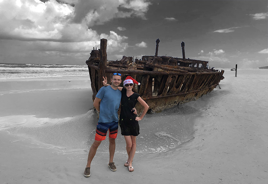 Navštívili sme aj slávny vrak lodi SS Maheno, ktorý bol na pobreží Fraser Islandu.
