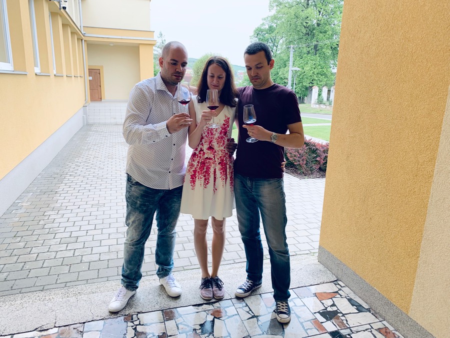 Výstava vín s ochutnávkou. Nikto z nás si nepamätá, prečo sme sa pozerali na poháre keď nás fotili, takže ochutnávka bola kvalitná.