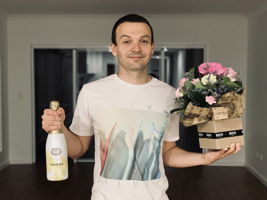 Let’s get party started. V dome nás čakala kytica kvetov s bublinkami.