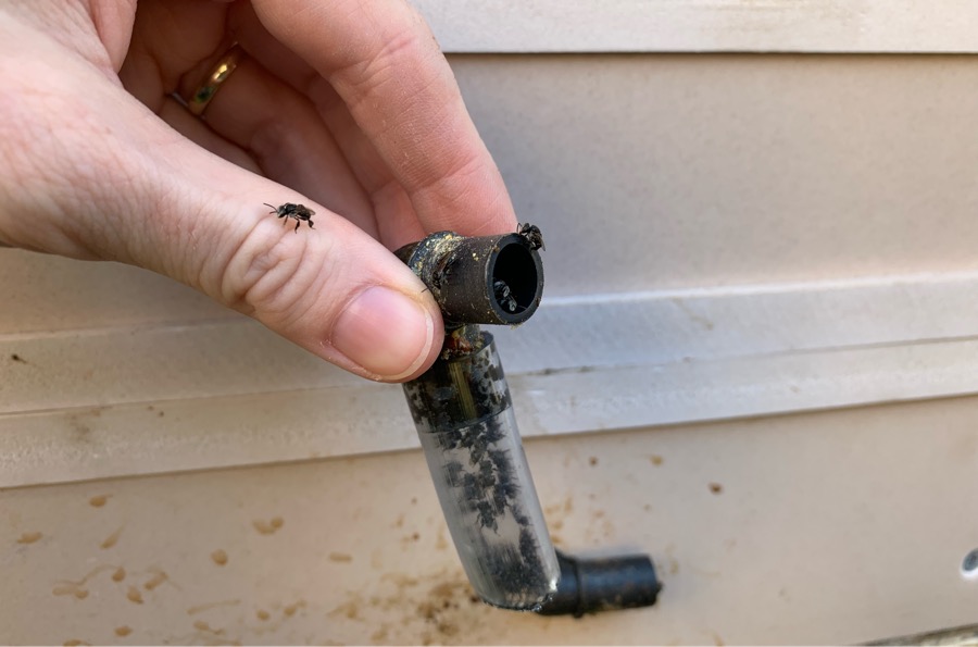 Ako som už spomínala, tieto včielky sú tzv Australian native stingless bees (miestne včely bez žihadiel). Veľkosťou sú asi tak štvrtinové v porovnaní s klasickou európskou včelou. Opeľovanie záhradky zvládajú rovnako, ale na nožičkách unesú menej peľu, tým pádom produkujú menej medu. Zvyčajne je to 1 kg na jeden úľ, kde pri európskej včele tých kíl môže byť až 50. Dočítala som sa, že med je chuťovo odlišný, ale rovnako liečivý (ak nie aj viac). Keďže sa za rok vyprodukuje len 1 kg, keby ste tento med chceli kúpiť, kilo sa pohybuje okolo $200, čo je celkom šialená suma. Prirovnávajú ho k Manuka honey. Je to veľmi kvalitný med od európskych včiel, ktoré zbierajú peľ z kvetov Manuky (Leptospermum scoparium). Je vysoko antibakteriálny a obsahuje látku MGO. Ďalšou zaujímavosťou je, že tieto naše včielky (budem ich volať “Sugarbag” lebo tak ich tu volajú) neuskladňujú med vo voskových plástoch, ale v propolisových. Keď sa med vyextrahuje, ostane vám akási hmota, ktorá sa dá tvarovať ako plastelína a používa sa v kozmetike alebo za z nej vytvaruje náustok na Didgeridoo (austrálsky hudobný nástroj).