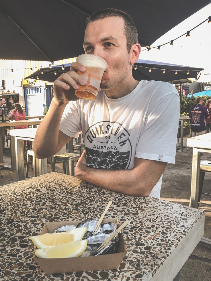 Hľadáme reštauráciu, kde majú menu s morskými plodmi. Zistili sme, že po roku je znovu normálne otvorená Eat Street. Hurá! Tam bol skvelý stánok s čerstvými ústricami. Tam pôjdeme.