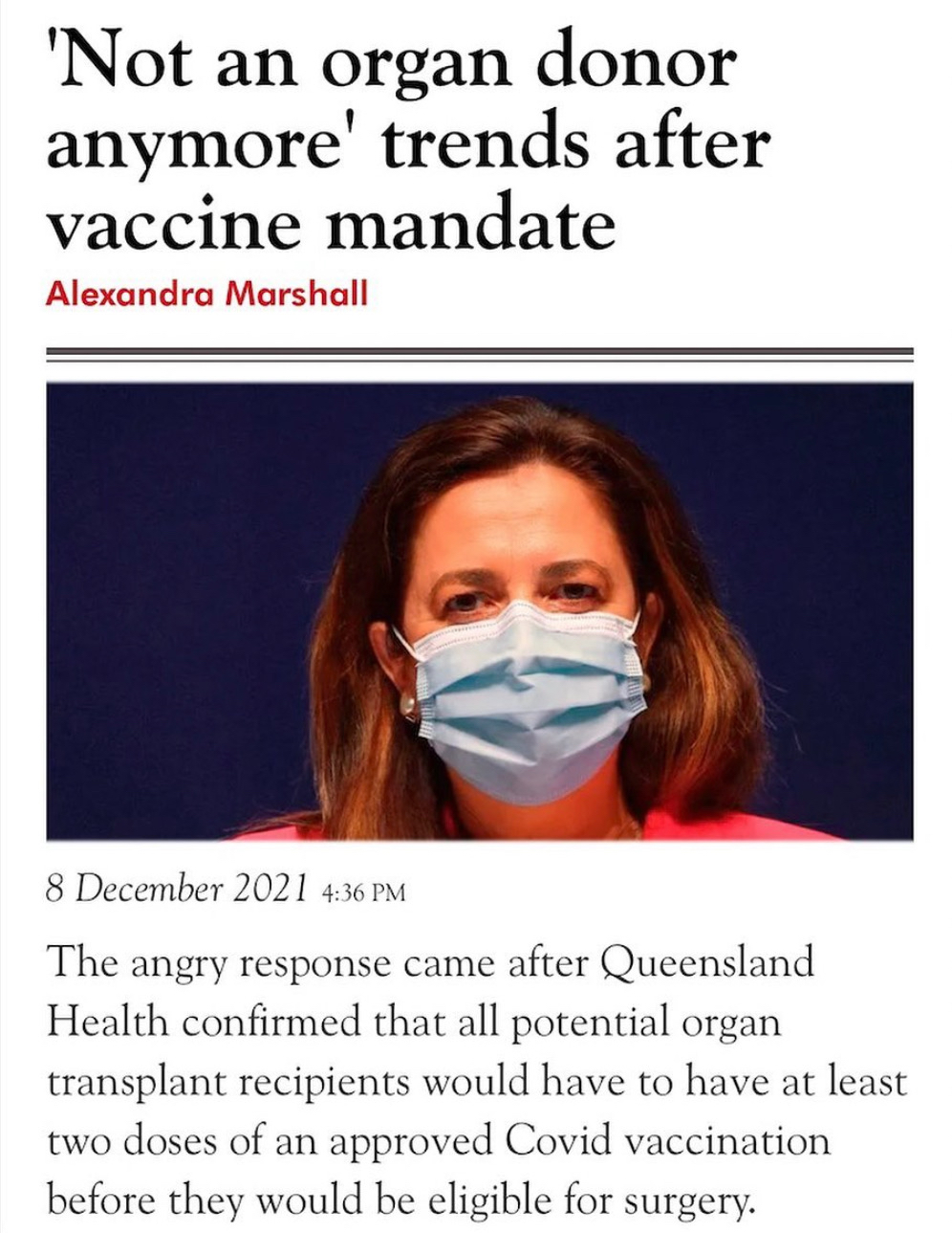 Preočkovanosť v celej Austrálií je 93% (k lednu 2022, vo veku 16+, 2 a viac dávok) väčšina ľudí sú poslušní občania a bez pochybností robia, čo im vláda povie.