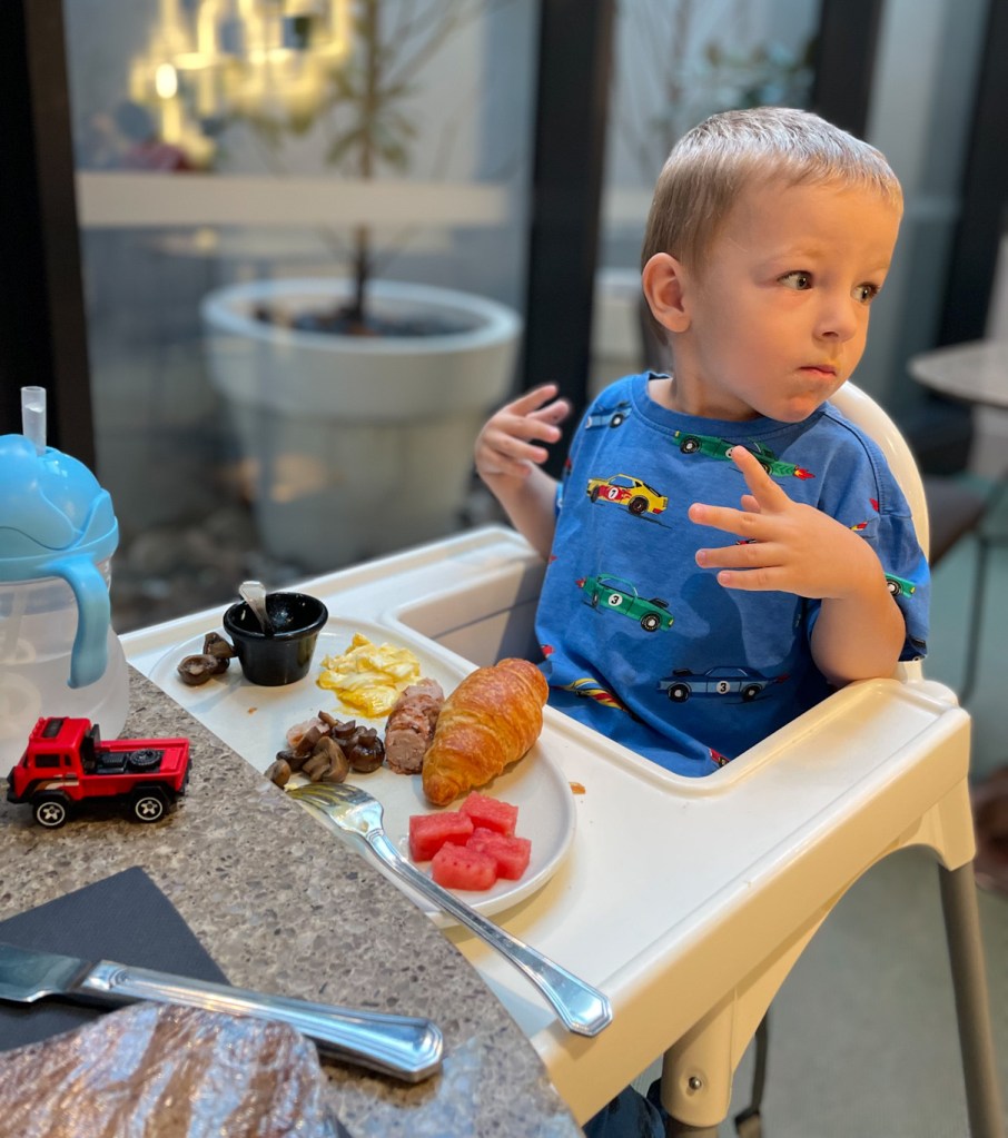 Podvečer sme ešte navštívili mesto, aby sme si dali niečo pod zub, a na hoteli už len umyť zuby a do hajan. Pred spaním kluci ešte trochu poblbli. Drobec má teraz v obľube recitovať básničky. Na apartmáne objavil telefón a rovno spustil jeho obľúbenú: