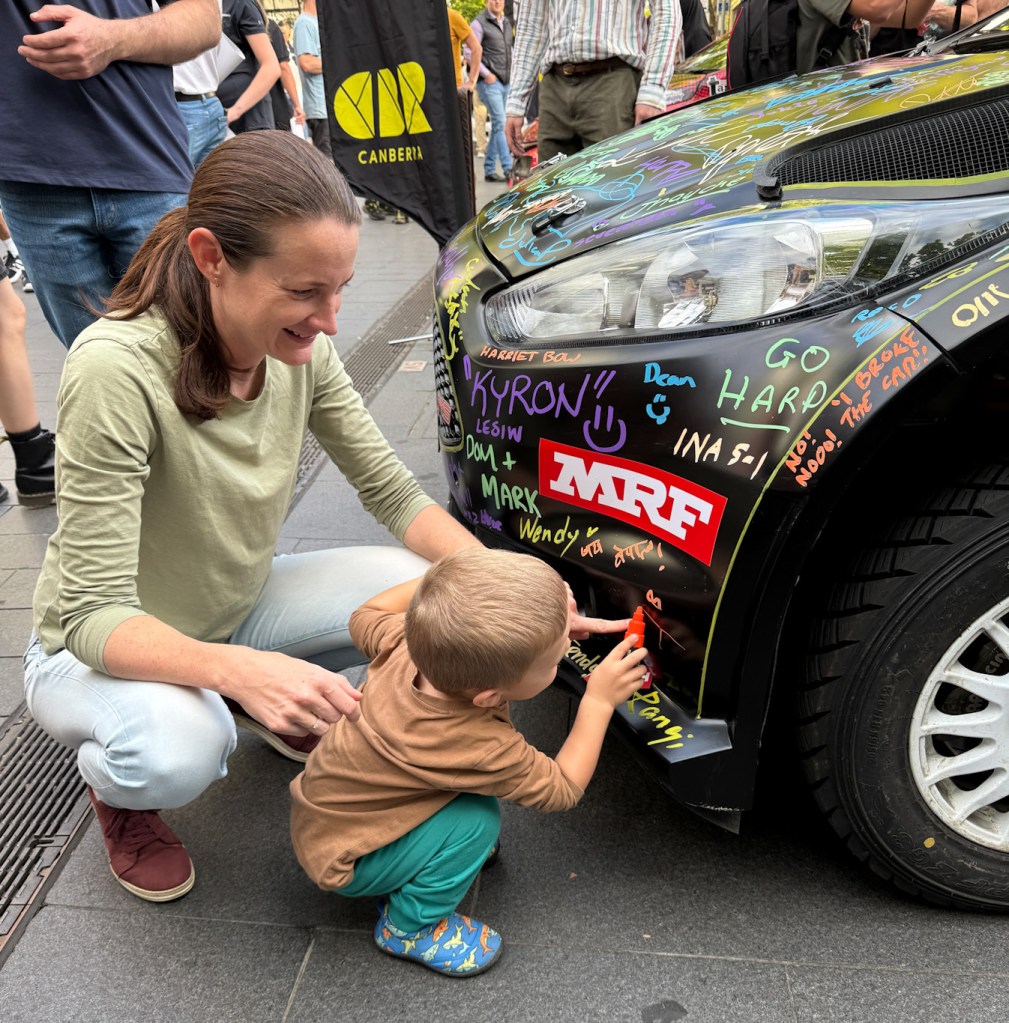 Jirko nás zobral na rally do Canberry. Drobec mal z toho obrovský zážitok.