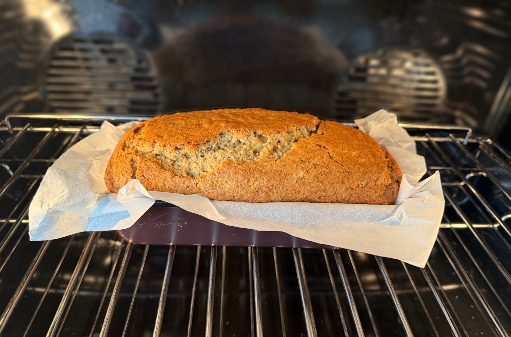 - Vložte do rozohriatej rúry a pečte 30 minút na 180 °C, potom teplotu znížte na 160 °C a dopečte ešte 20–25 minút. Chlebík by mal byť pekne zlatistý, nadýchaný a na dotyk pružný.