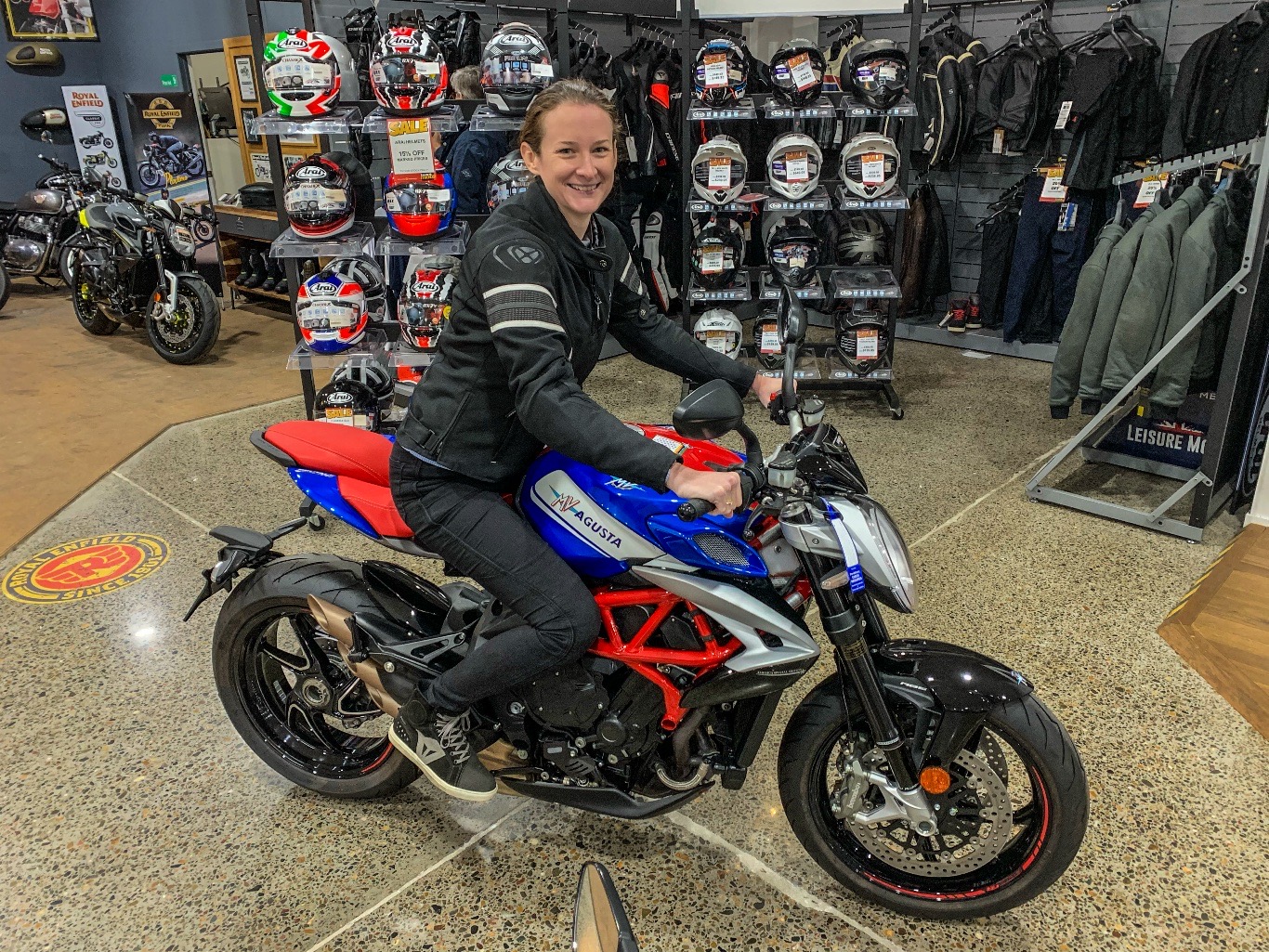 Po nejakej chvíli prišiel na trh prvý Triumph Trident 660, ktorý bol na tento nižší řidičák. Jazdila parádne, na to, že bo bola RE (restricted) motorka. Dochádzanie na nej bolo oveľa lepšie. Jej kúpa mi pritiahla viac pozornosti z okolia. Po roku som si spravila upgrade na neobmedzenú kubatúru a začala jazdiť na Jirkovom Tigrovi 800. A že je to teda veľká adventure motorka, to sa mi už chlapi prihovárali, či je to moje a že WAU, že je to cool. Žena jazdí na takej veľkej motorke, ktorá je veľká aj na niektorých chlapov.